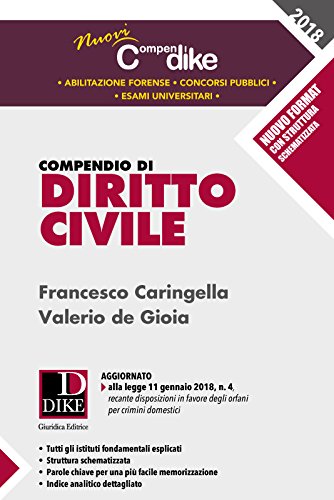 Il presente Compendio propone il diritto civile in linea con i programmi delle principali università ma con una sintesi espositiva che, anche grazie all'innovativo format schematico, consente una immediata assimilazione dei contenuti dei singoli istituti. Il volume espone in modo semplice e lineare anche le questioni più ostiche e costituisce uno strumento indispensabile per il professionista e imprescindibile per chi ha la necessità di conseguire una rapida, ma completa,.